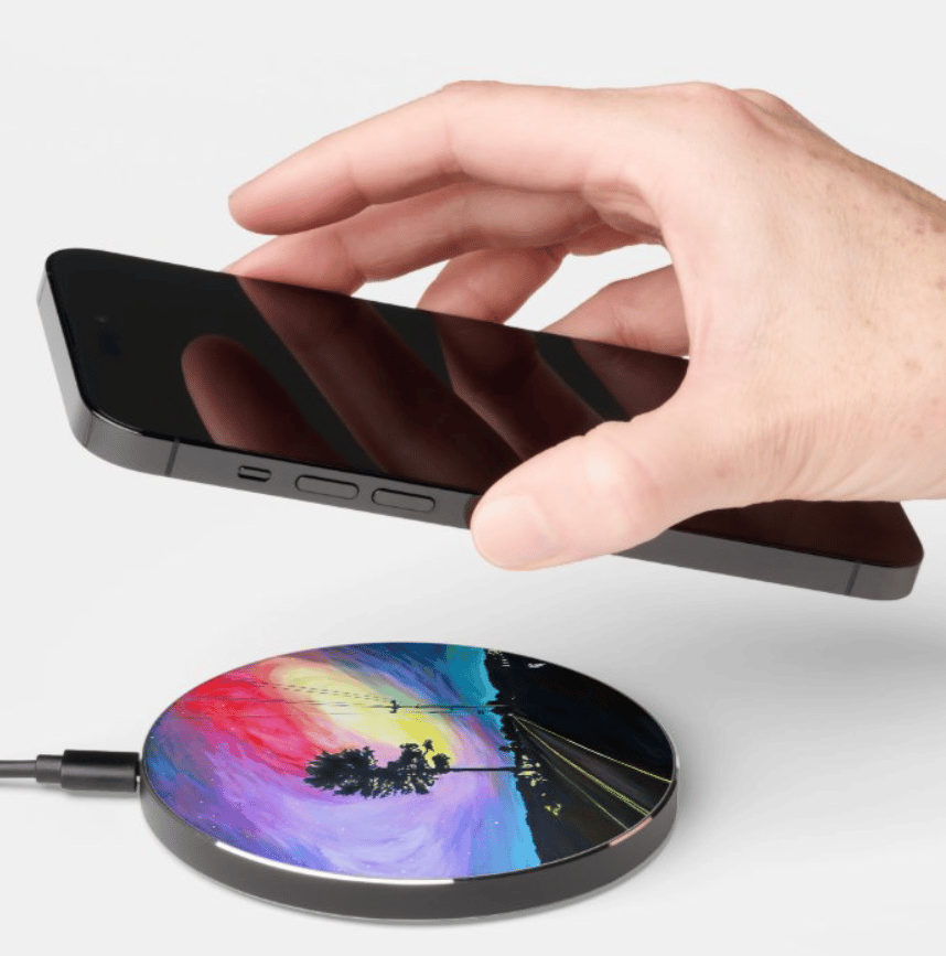 This Spoke wireless charger is there to get the job done! Its sleek and durable design is wireless charging compatible. The design is located beneath the acrylic faceplate, so rest assured, it won’t scratch or fade over time.