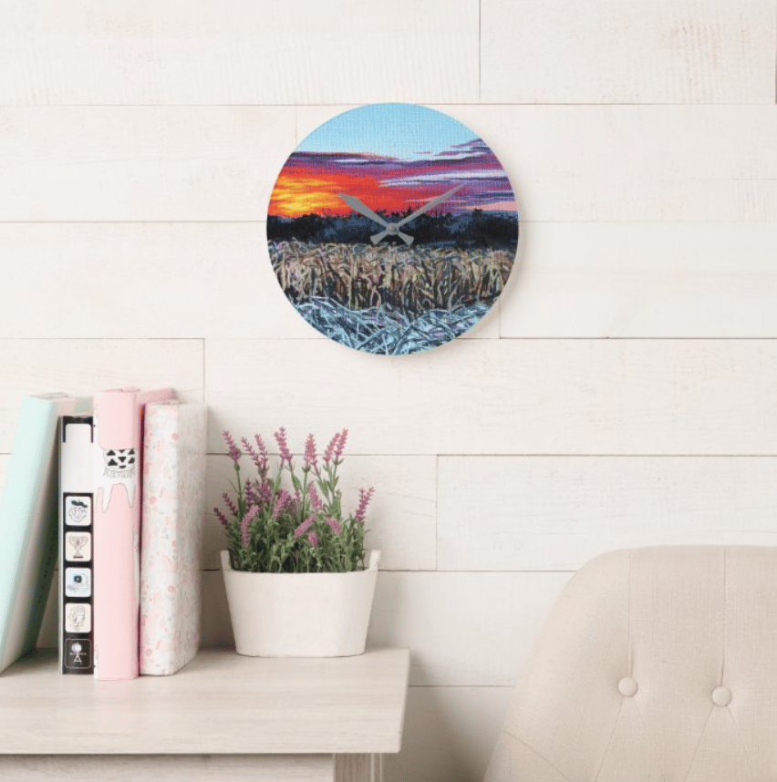 This unique, high-quality wall clock is vibrantly printed with AcryliPrint®HD process and features a pre-installed backside hanging slot for easy hanging and a non-ticking design.