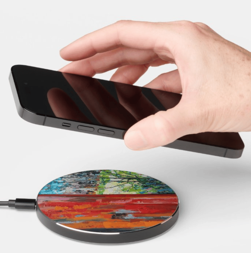 This Spoke wireless charger is there to get the job done! Its sleek and durable design is wireless charging compatible. The design is located beneath the acrylic faceplate, so rest assured, it won’t scratch or fade over time.