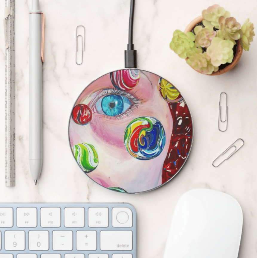 This Spoke wireless charger is there to get the job done! Its sleek and durable design is wireless charging compatible. The design is located beneath the acrylic faceplate, so rest assured, it won’t scratch or fade over time.