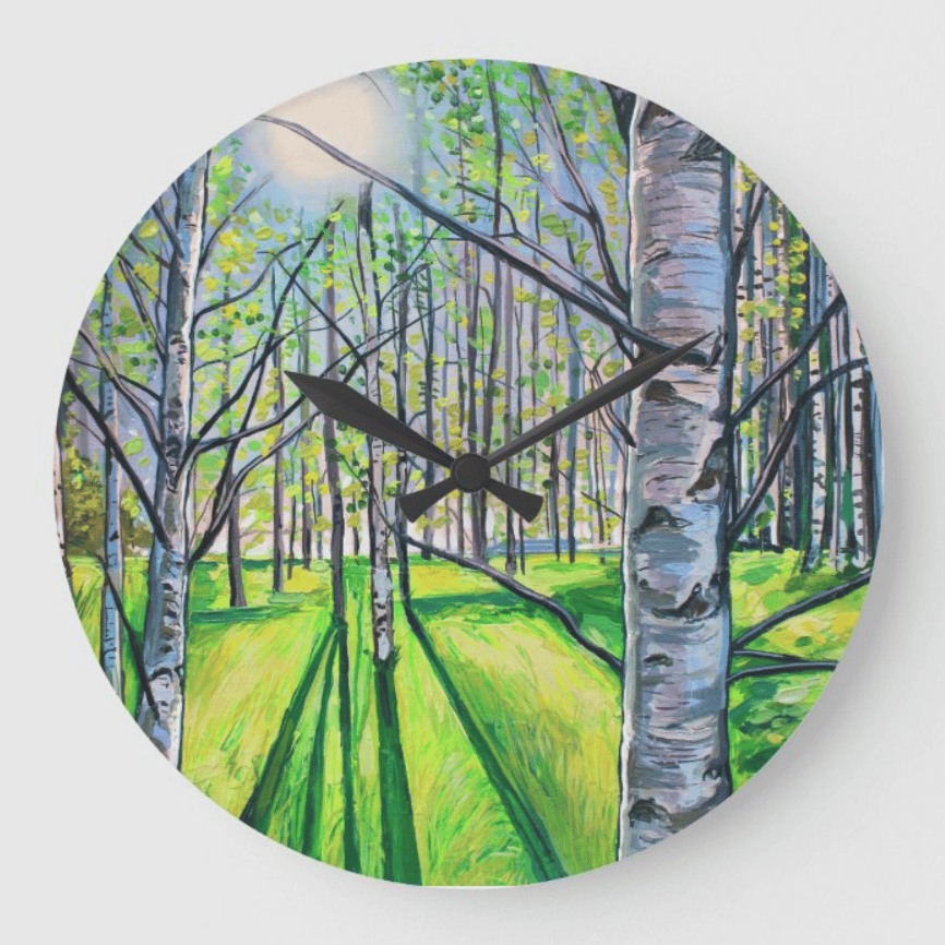 This unique, high-quality wall clock is vibrantly printed with AcryliPrint®HD process and features a pre-installed backside hanging slot for easy hanging and a non-ticking design.
