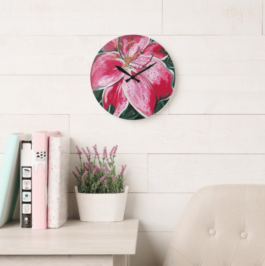 This unique, high-quality wall clock is vibrantly printed with AcryliPrint®HD process and features a pre-installed backside hanging slot for easy hanging and a non-ticking design.