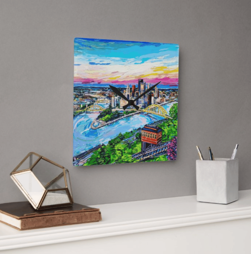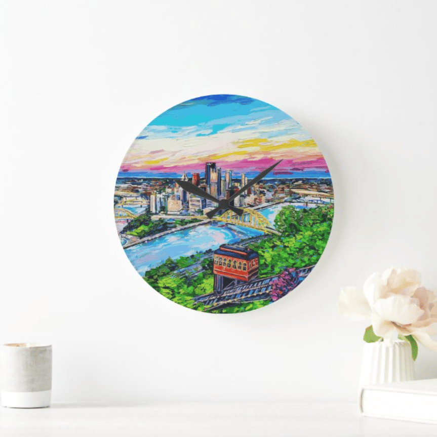 This unique, high-quality wall clock is vibrantly printed with AcryliPrint®HD process and features a pre-installed backside hanging slot for easy hanging and a non-ticking design.