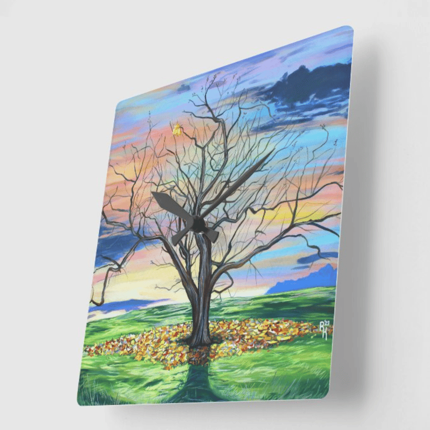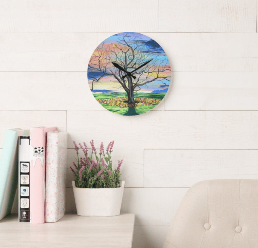 This unique, high-quality wall clock is vibrantly printed with AcryliPrint®HD process and features a pre-installed backside hanging slot for easy hanging and a non-ticking design.
