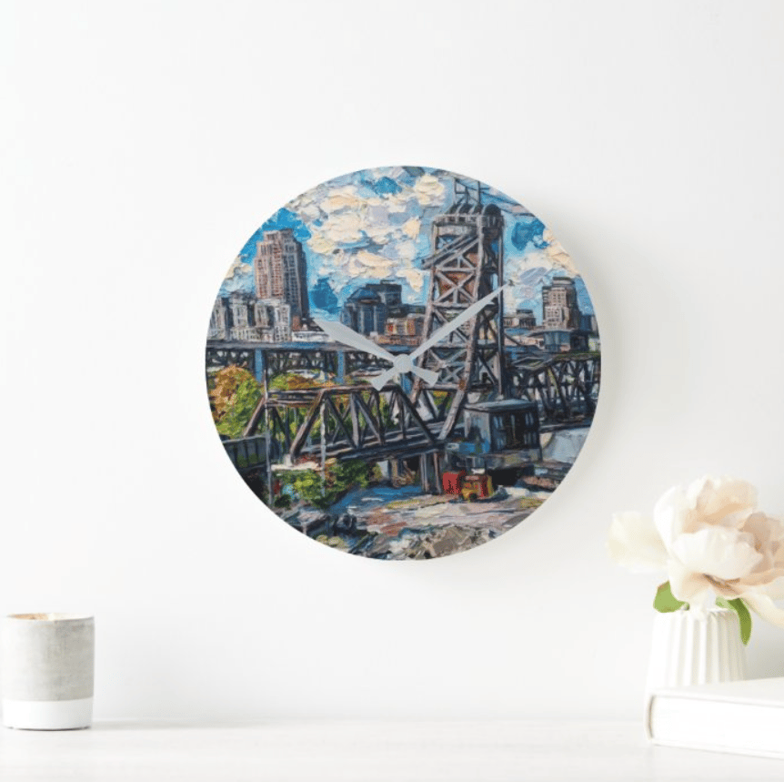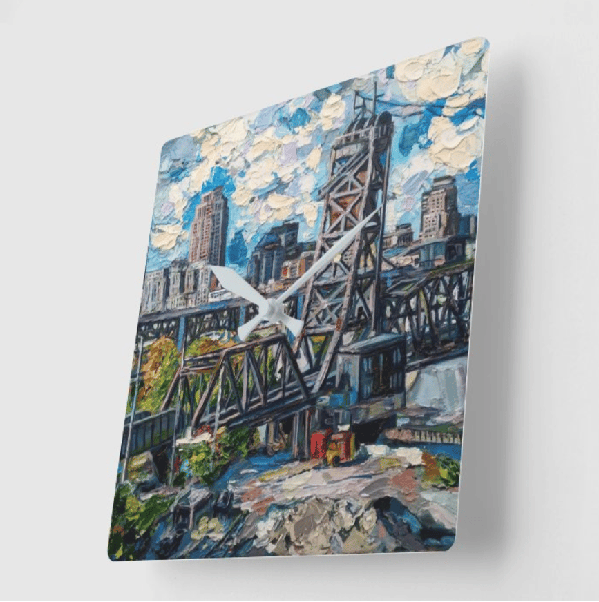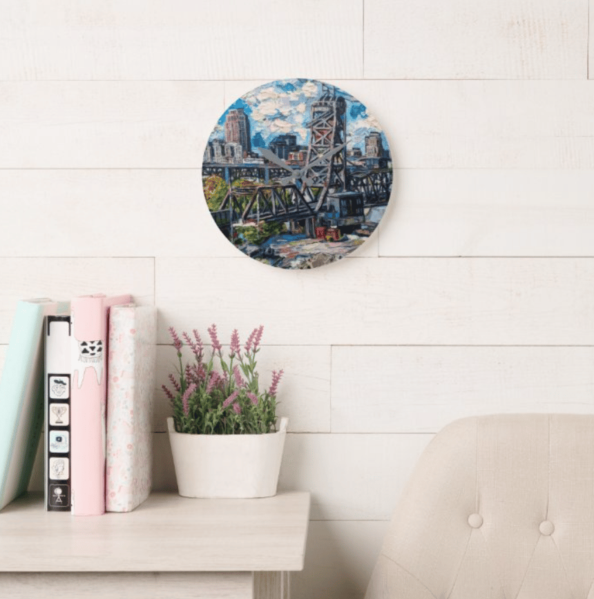 This unique, high-quality wall clock is vibrantly printed with AcryliPrint®HD process and features a pre-installed backside hanging slot for easy hanging and a non-ticking design.