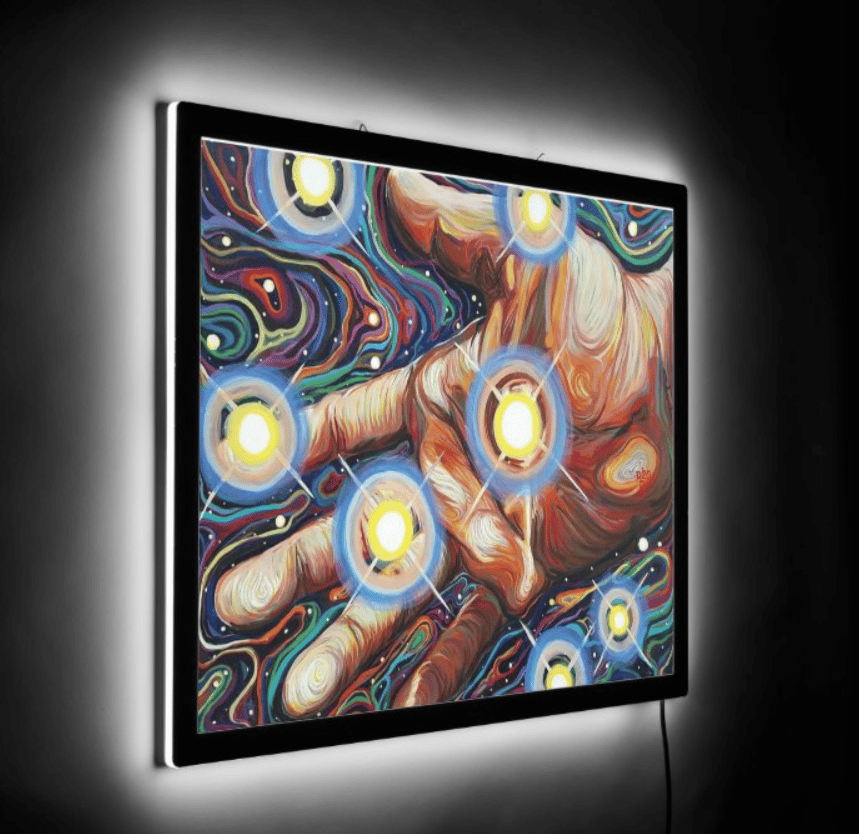 Design Tip: dark colors block more light than lighter colors, with black being completely opaque (blocking all the sign's light behind it) and white being completely transparent. Lighter colors let more of the sign's light through and give those colors the appearance of glowing.