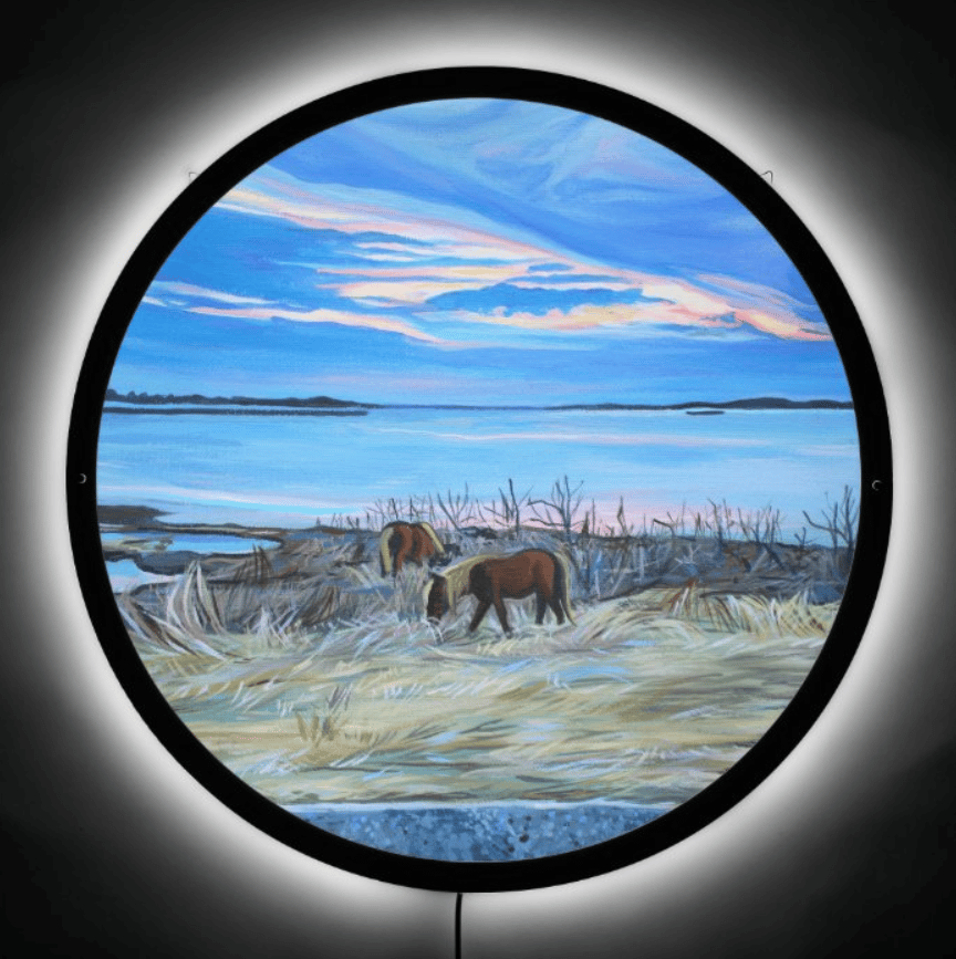 Design Tip: dark colors block more light than lighter colors, with black being completely opaque (blocking all the sign's light behind it) and white being completely transparent. Lighter colors let more of the sign's light through and give those colors the appearance of glowing.